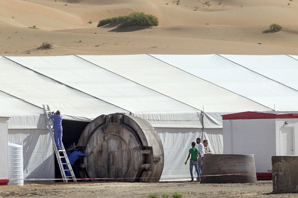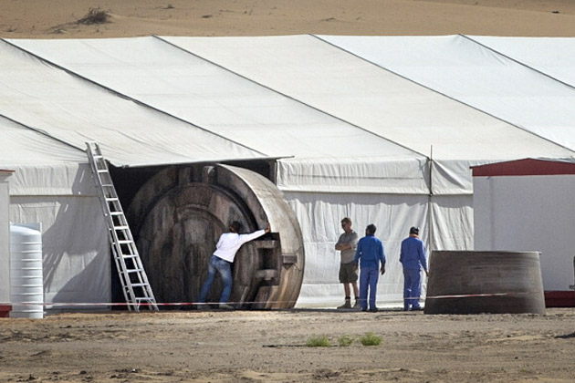 Photos taken by The National seem to reveal what most of us have suspected, the desert planet Tatooine will make an appearance in Star Wars Episode VII. With Disney’s secrecy surrounding every aspect of the new film, these images seem to only serve to tease and draw more speculation from fans. The rumored set photos were taken in Abu Dhabi near the Qasr Al Sarab resort. Crew members can be seen moving what appear to be set pieces into a large tent, which one can only speculate to be used for ensuring that details from the production remain a secret.